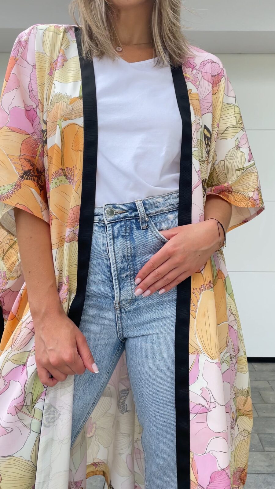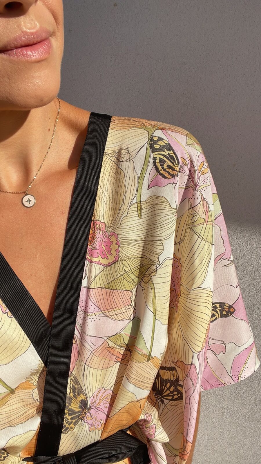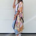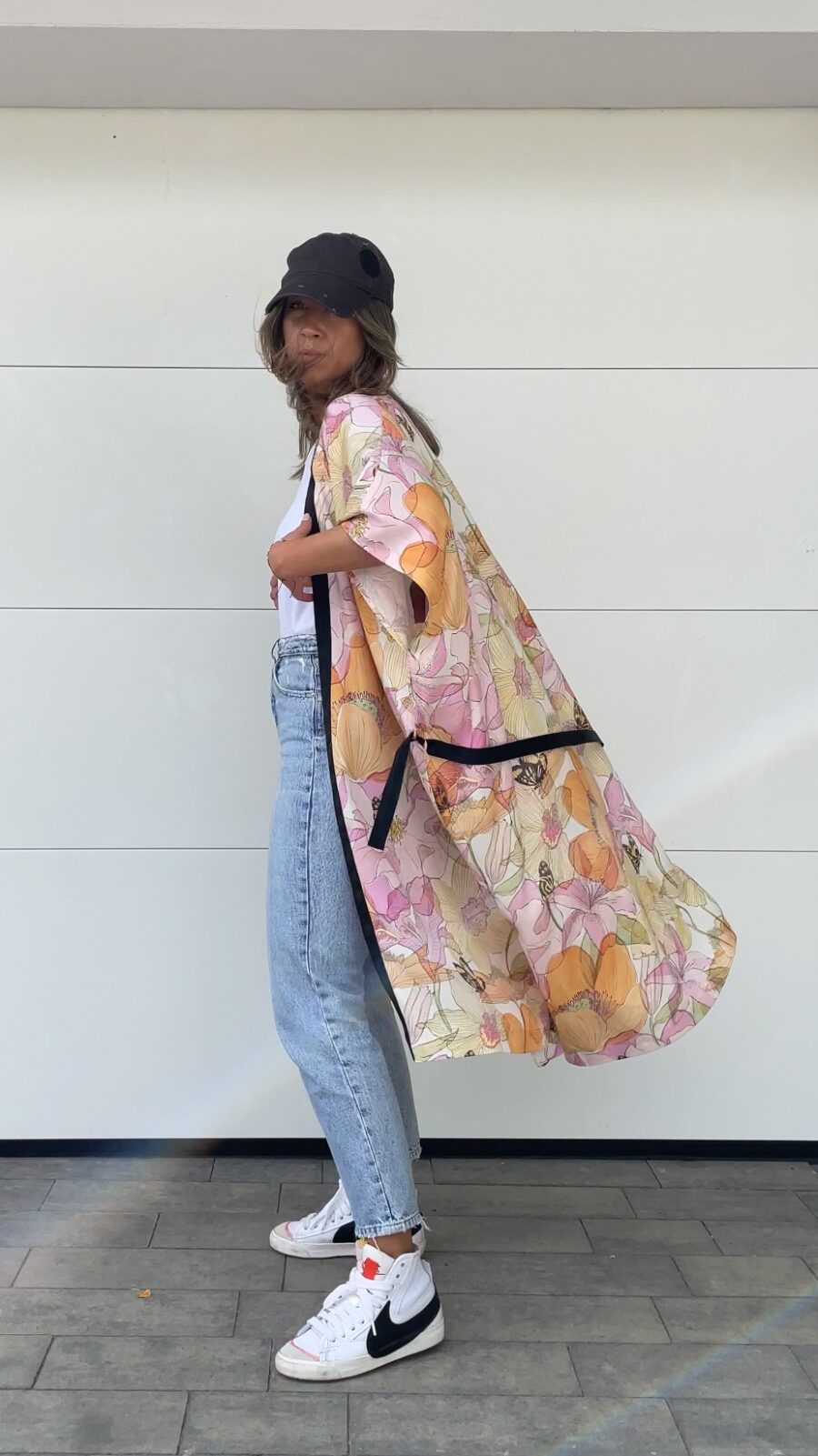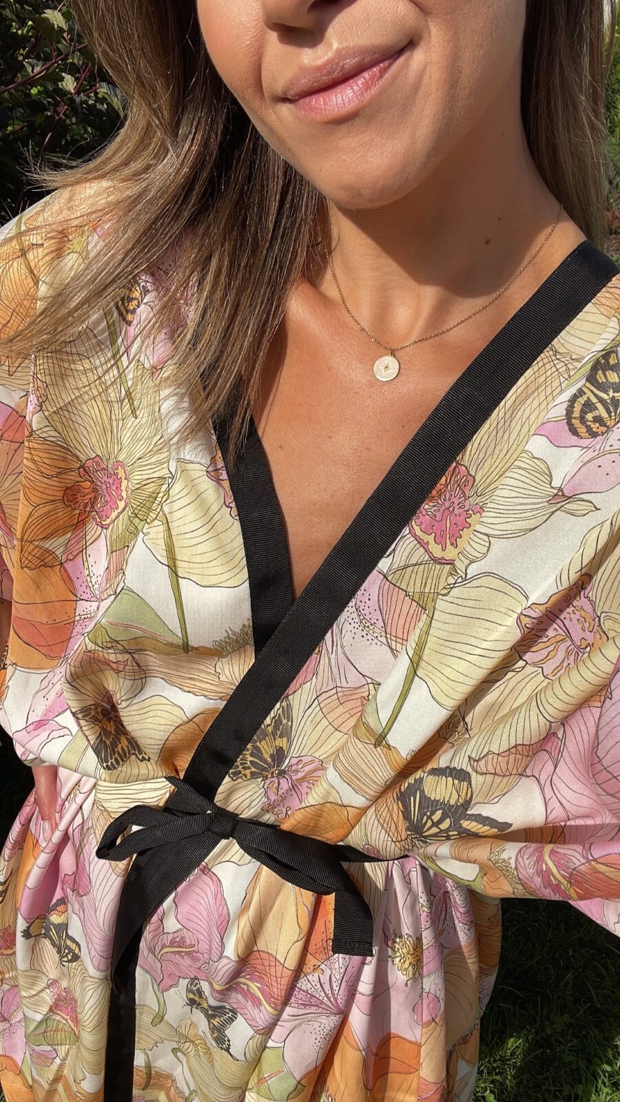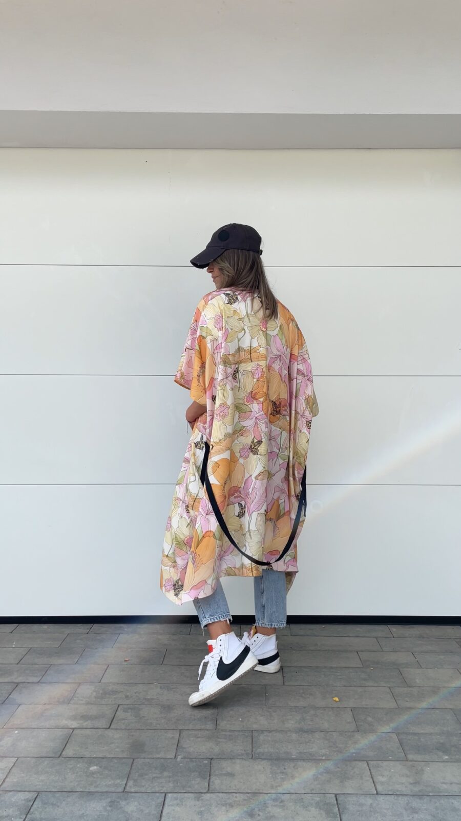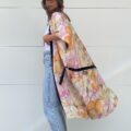 Kimono MIKO możemy nosić samodzielnie jako sukienkę, dorzucić szorty lub spodnie i traktować jako narzutkę, lub na plażę na kostium kąpielowy. Wykonane jest z tencelu, wspaniałej, oddychającej, delikatnej dla skóry tkaniny, której bazą jest celuloza drzewna. Kimono ma prostą, swobodną formę, boczne kieszenie. Przód wykończony jest czarną taśmą, z której zrobiony jest także pasek. Polecam eksperymentować z różnymi częściami garderoby, butami i dodatkami, bo można nosić je na wieeeele sposobów.