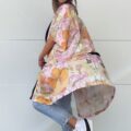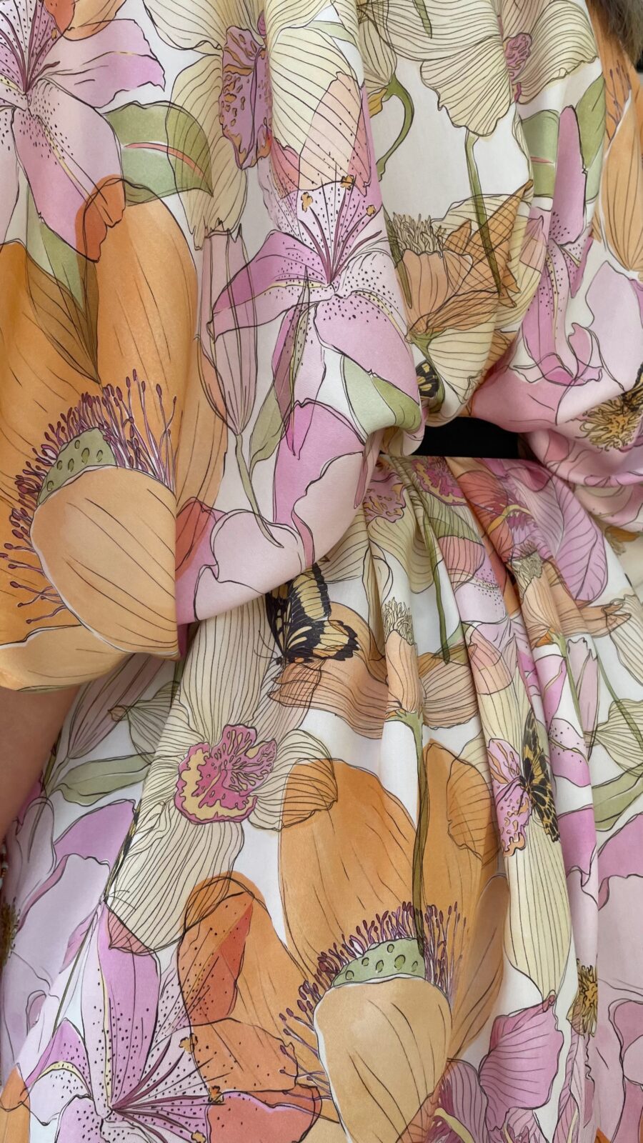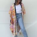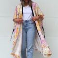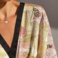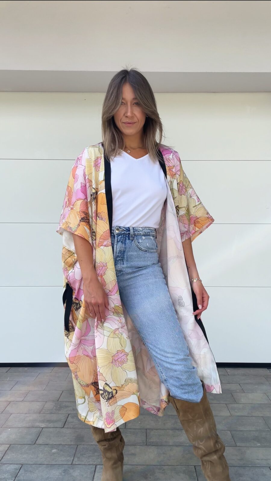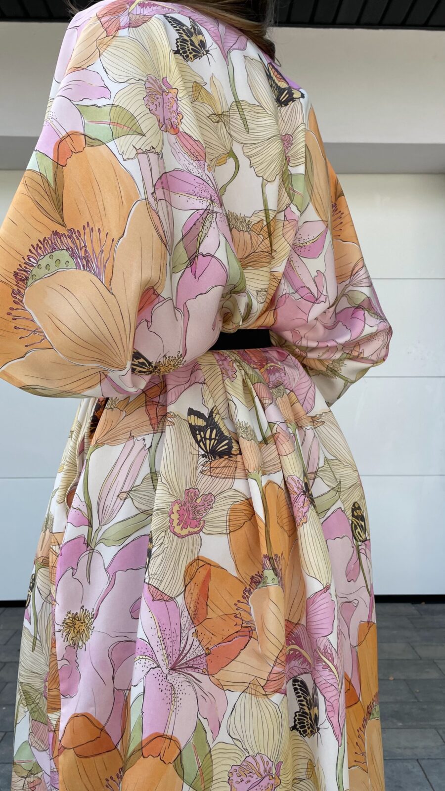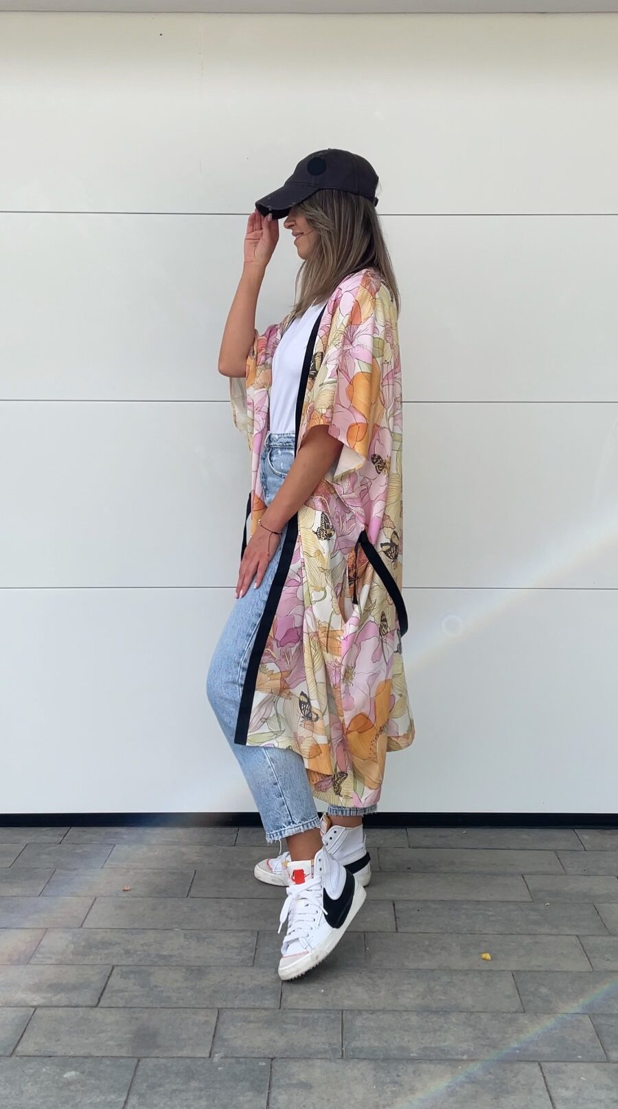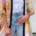 Kimono MIKO możemy nosić samodzielnie jako sukienkę, dorzucić szorty lub spodnie i traktować jako narzutkę, lub na plażę na kostium kąpielowy. Wykonane jest z tencelu, wspaniałej, oddychającej, delikatnej dla skóry tkaniny, której bazą jest celuloza drzewna. Kimono ma prostą, swobodną formę, boczne kieszenie. Przód wykończony jest czarną taśmą, z której zrobiony jest także pasek. Polecam eksperymentować z różnymi częściami garderoby, butami i dodatkami, bo można nosić je na wieeeele sposobów.
