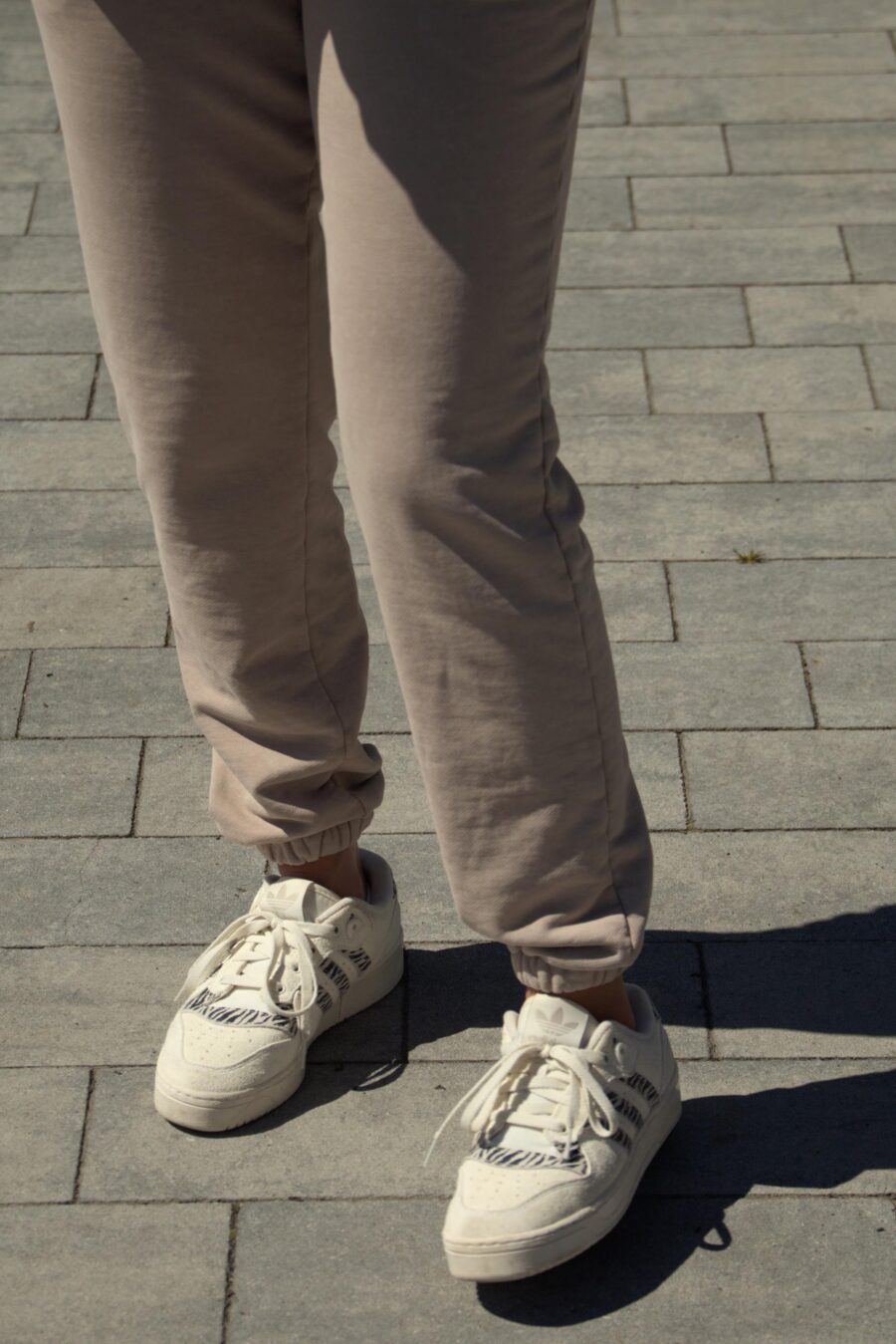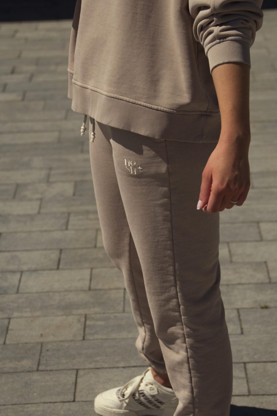 Spodnie dresowe BERRI vintage wykonane są z certyfikowanej dzianiny z pętelką od środka, o wyjątkowym splocie diagonalnym. Poddane zostały procesowi spierania oraz zmiękczania zgodnie z najlepszym certyfikatem GOTS. Nogawki zostały uszyte tak, by łatwiej było dopasować długość spodni do swojego wzrostu. Dół nogawek ma schowane szwy, dzięki czemu możemy podwinąć nogawkę i wszystko jest pięknie wykończone. Spodnie mają także kieszenie boczne, w pasie gumę oraz bawełniany sznurek. Przód spodni zdobi niewielki haft. Do kompletu polecam bluzę BERRISO vintage.