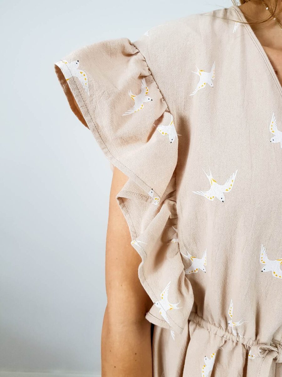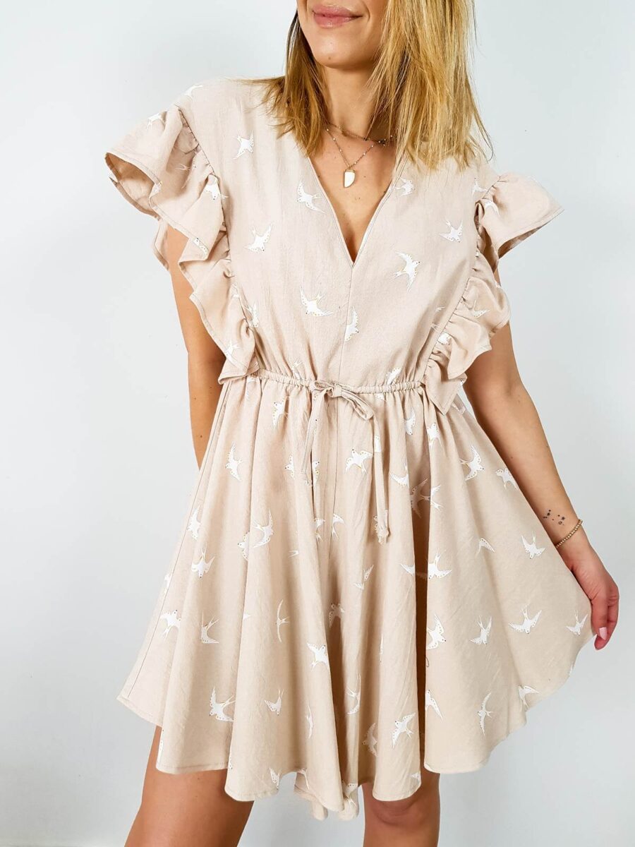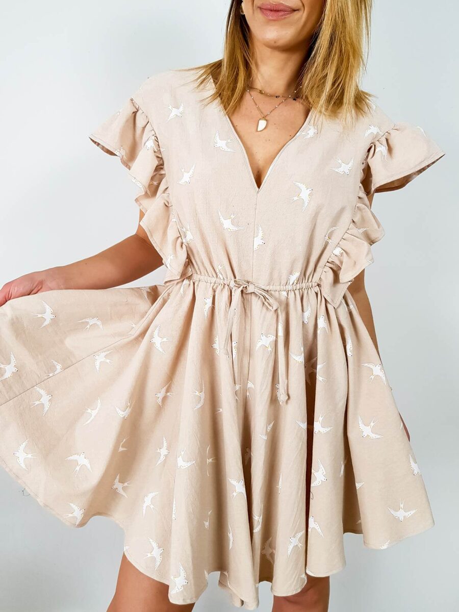Sukienka BAWEŁNIANA Z FALBANKAMI – SWALLOW beige