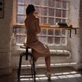 **sukienka wykonana z rozciągliwej dzianiny w prążek, więc rozciąga się +/- 15cm